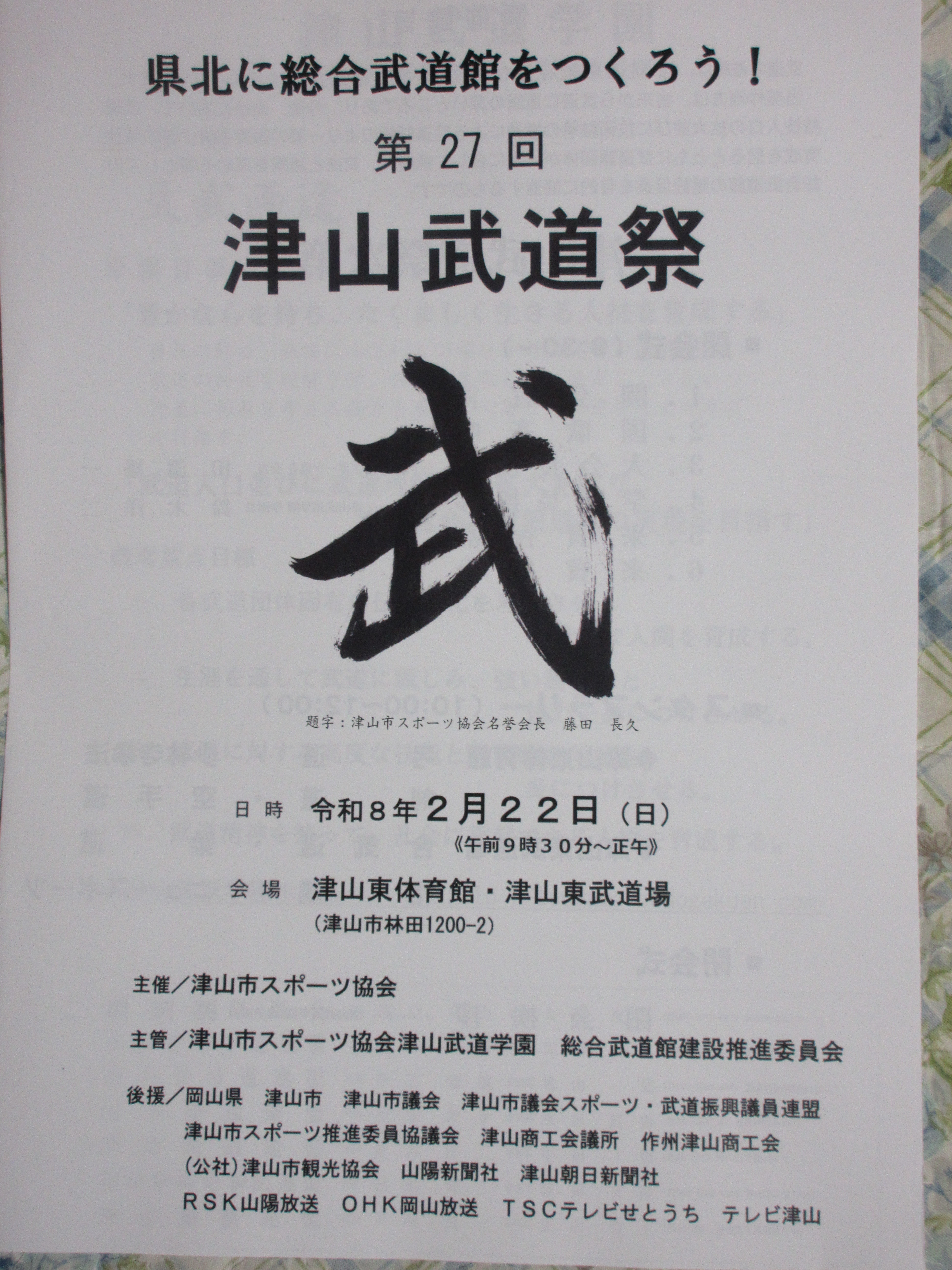 ご報告が遅くりましたが、2月22日(日)、第27回を数える津山武道祭が津山東体育館&津山東武道場で開